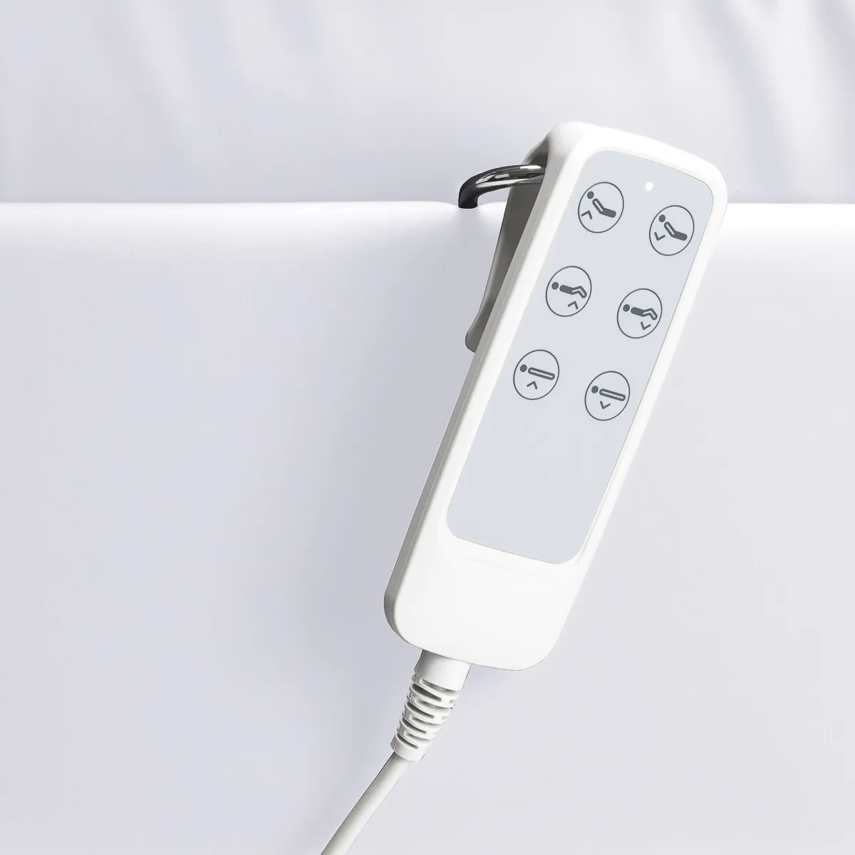 Miza je opremljena s tremi tiho delujočimi aktuatorji, ki omogočajo električno nastavitev višine, naklona naslonjala ter kota naslona za noge. Upravljanje poteka prek priročnega daljinskega upravljalnika, ki je vedno pri roki, nameščen je na kovinskem nosilcu ob sedežu.